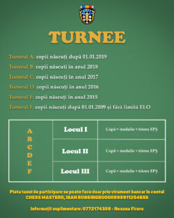 Plata se face exclusiv prin virament bancar în contul CHESS MASTERS